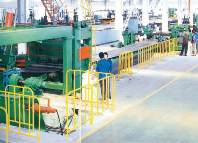 該生產(chǎn)線為中厚板開卷校平生產(chǎn)線的升級機(jī)型。為了適應(yīng)鋼廠不斷推出的厚度更大、板幅更寬的鋼卷開平需要本公司特別設(shè)計、制造出該系列產(chǎn)品。由上料小車、開卷機(jī)、引頭裝置、夾送及粗校、過渡臺、對中裝置、主校平機(jī)、測長裝置、尾料夾送、剪板機(jī)、輸送出料、落料整料裝置、電控系統(tǒng)與液壓氣動系統(tǒng)等組成。